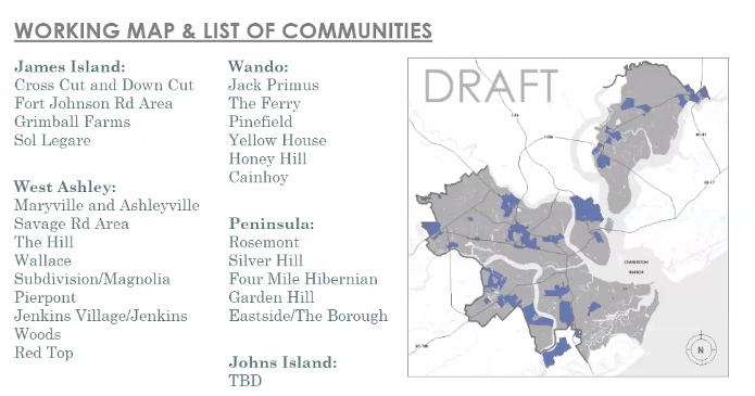 List of settlement communities identified by the City of Charleston as part of the 2020-2021 Comprehensive Plan update